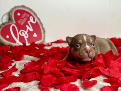 Bruno is a handsome male Micro Bully puppy, born on December 26, 2025. He is already showing a compact, thick build with a beautiful coat pattern. He is strong, healthy, and nursing well. Bruno is being raised in a clean, hands-on environment, receiving daily care, close monitoring, and early handling to support proper growth and development. He will continue to mature under careful supervision to ensure he gets the best possible start in life.